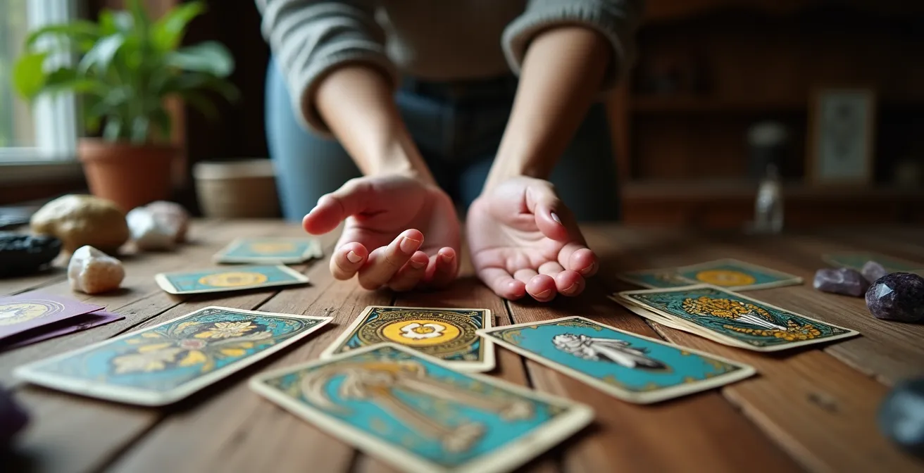 Plutôt que de vous concentrer sur la purification des objets, concentrez-vous sur la clarification de votre propre esprit. Une simple bougie allumée n’a pas de pouvoir en soi, mais le geste d’allumer une flamme peut symboliser pour votre subconscient le début d’un moment d’introspection. De même, une musique d’ambiance ou une huile essentielle ne sont pas magiques, mais elles créent une bulle sensorielle qui vous isole des distractions du quotidien et ancre votre attention dans le présent. Le mélange des cartes, répété un nombre défini de fois, devient une forme de méditation active, un geste qui occupe le corps et apaise le flux des pensées.